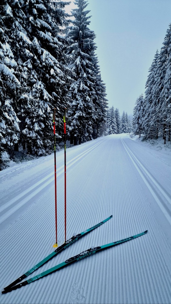 Sněhová nadílka je parádní, neotálejte a vyražte do stopy. Ideálně vybavení holemi Leki a běžkami Kästle.